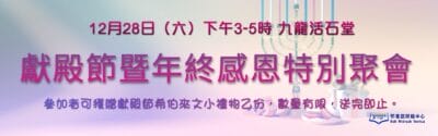 12月28日(六)「安息日研經坊」將會進行獻殿節暨年終感恩分享特別聚會